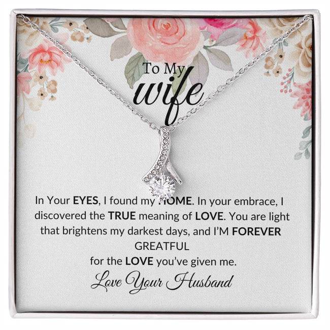 Show your wife how beautiful she is with the To My Wife in My Eyes Alluring Beauty Necklace. This necklace is a stunning symbol of your love and admiration for her, making it the perfect gift for any occasion. Let her know she is always in your thoughts with this elegant and timeless piece. To Wife Fr. Husband, for Anniversary Birthday gift Christmas Wedding gift or Valentine or I Sorry gift any occasion} 💕